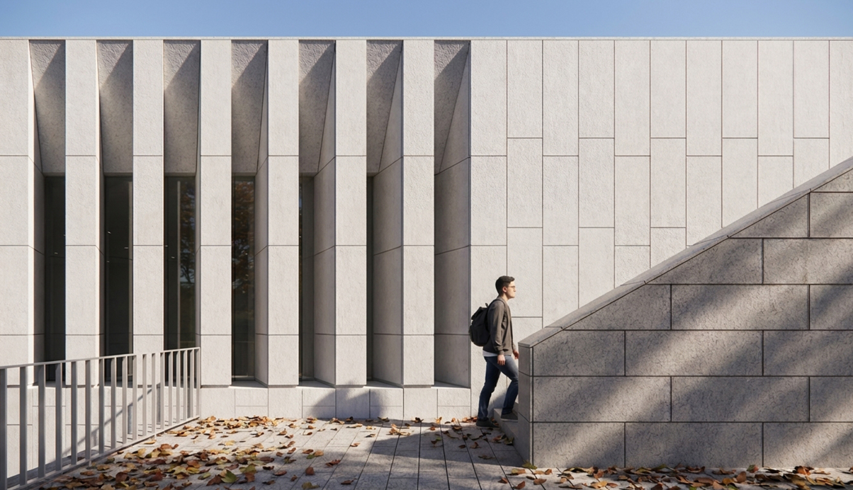 지형의 경사와 자연 환경을 존중하여 미술관의 매스를 두 덩어리로 나누고, 다양한 레벨에서 내.외부로 자유롭게 진입할 수 있다.