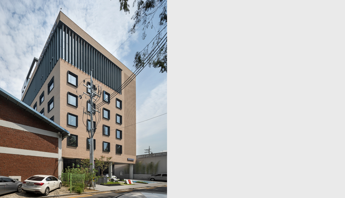 형태적인 개입이 최소화된 입방의 단순한 덩어리는, 오래된 공장들로 형성되어온 성수동의 맥락이 편하게 이어지도록 벽돌의 질감으로 마무리 되었는데, 내부 공간의 기능을 그대로 드러내며 크게 세 개의 창으로 파사드를 구성한다. 건물의 몸체를 구성하는 2~5층은 개별 기업이 입주하는 공간으로, 기업의 단위마다 하나의 창을 갖도록 하여 창의 단위들이 적층 된 공유오피스의 표정을 갖도록 했다. 상부 6, 7 층은 주로 개인적 단위의 공유 오피스로, 분절 없이 연결되어 공유되는 개방적인 창을 갖도록 했다. 두 개층을 하나로 묶어주는 세 개의 팔러는 수직으로 쌓여 개방된 큰 창으로 열리면서 내부의 활기가 그대로 밖으로 드러나도록 했다. 이렇게 다양하게 고민된 공간의 쓰임이 그대로 구축된 헤이그라운드의 가치는, 건물의 조형을 통해 억지로 드러나기 보다 실제로 공간을 활용하는 사용자들에게서 찾을 수 있게 된다.