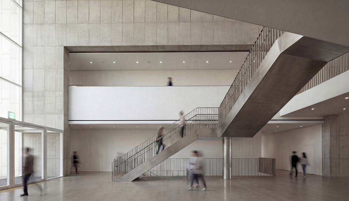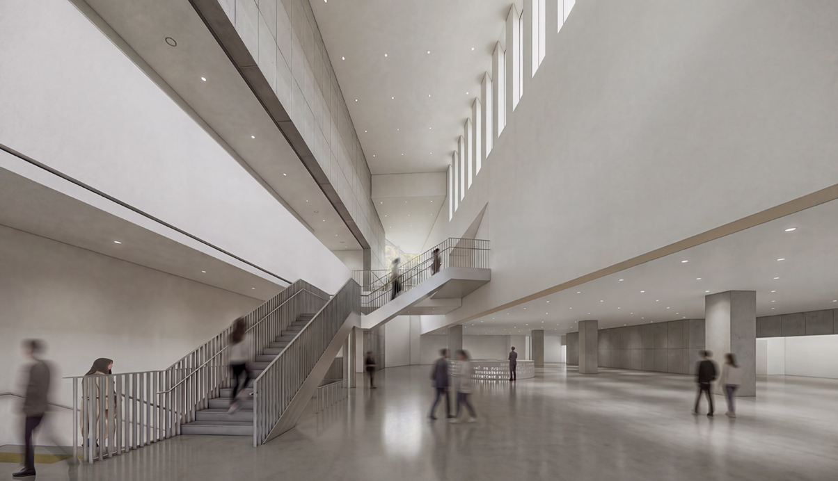 지형의 경사와 자연 환경을 존중하여 미술관의 매스를 두 덩어리로 나누고, 다양한 레벨에서 내.외부로 자유롭게 진입할 수 있다.