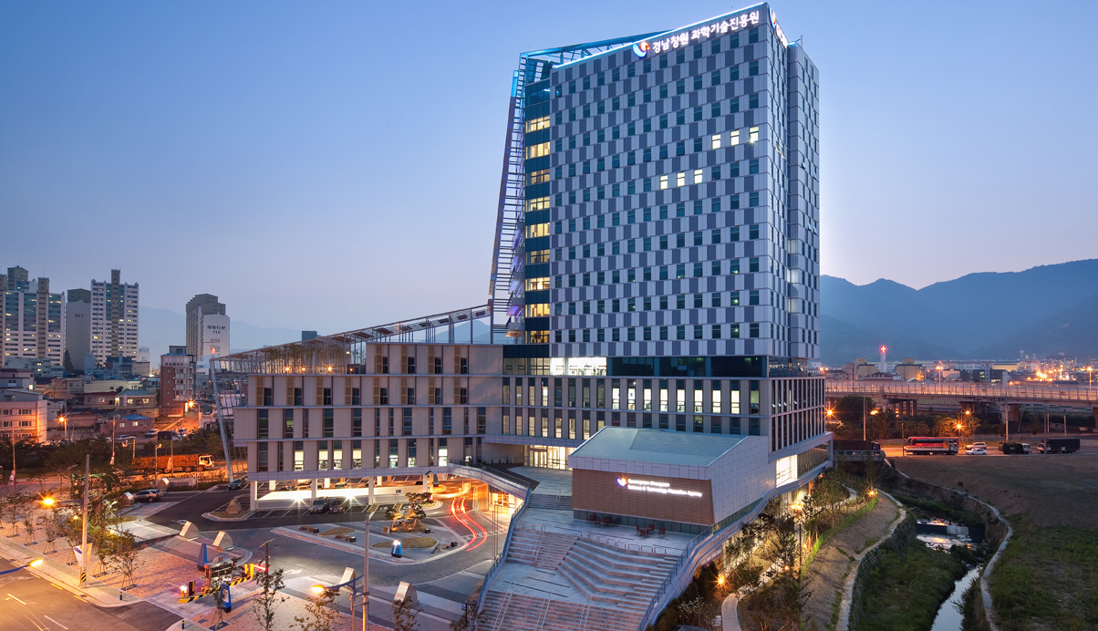 경남창원 과학연구 복합파크는 창원, 마산, 진해 세도시가 통합돼, 그 역량이 한층 강화되듯이, 첨단과학, 국제영재, 그리고 녹색에너지가 하나되어 시너지를 만드는 글로벌 시너지파크(Global synergy park)를 지향한다. 주요시설로서 첨단 R&D센터, 국제과학영재센터, 녹색성장센터가 들어서며 외부에서도 각각 독립적 인지가 되도록 구성하고, 공용지원시설인 국제회의실 및 식당, 각종 편의시설들은 저층부에 통합 구성하여, 복합파크로서의 면모를 갖추게 된다. 미래를 지향하는 경남 창원의 랜드마크를 위해, 도시 어느 방향에서도 다이나믹한 매스를 인지할 수 있는 다방향적인 조형과, 프로그램의 재구성(regrouping)을 통해 각 시설의 독립 및 연계성을 고려하였으며, 지역시민과 연구원들을 위한 개방적 교류공간(deck)도 함께 배려한 인터랙티브 콤플렉스(Interactive complex)를 실현하였다. 특히, 일반 R&D센터와는 차별화되는 복합파크로서의 창의적 공간(Creative space)을 위해, 국제과학영재센터의 별도 전용공간구성, 이용편의와 프라이버시를 고려한 학생기숙사 및 게스트하우스 배치, 최적의 연구환경과 임대전용률을 고려한 R&D센터 평면계획등 사용자 인터뷰를 통한 맞춤형 설계로서 시설 곳곳에 기능과 공간을 최대한 배려하였다. 본 건물의 입면을 구성하고 있는 에코 캐노피(Eco canopy)는 전통창살의 아름다움과 기능성에 착안하여 학생들의 다양한 체험교육과 태양광 발전설비 및 수평/수직차양등이 설치되어 친환경 생생도시로서의 상징을 함께 담아냈다. 또한 신기술, 신공법등을 통한 내진성능 향상과 유지관리 및 업무시간을 고려한 개별 냉난방 시스템을 적용하고, 연구시설로서의 보안과 방재를 고려한 100년 지향의 지능형 첨단시스템인 스마트 테크놀로지(smart technology)를 실현하였다. 경남창원 과학연구 복합파크는, 기존 R&D시설의 권위성에서 벗어나고, 과학영재 꿈나무들에겐 친숙한 교육시설이자 연구원들에게는 최적의 환경을 제공하는 첨단연구소, 그리고 시민들에게 열린 과학의 마당으로서, 새로운 과학의 미래를 선도하는 글로벌 싸이언스 허브(Global science hub)로서 자라매김하게 될 것이다.